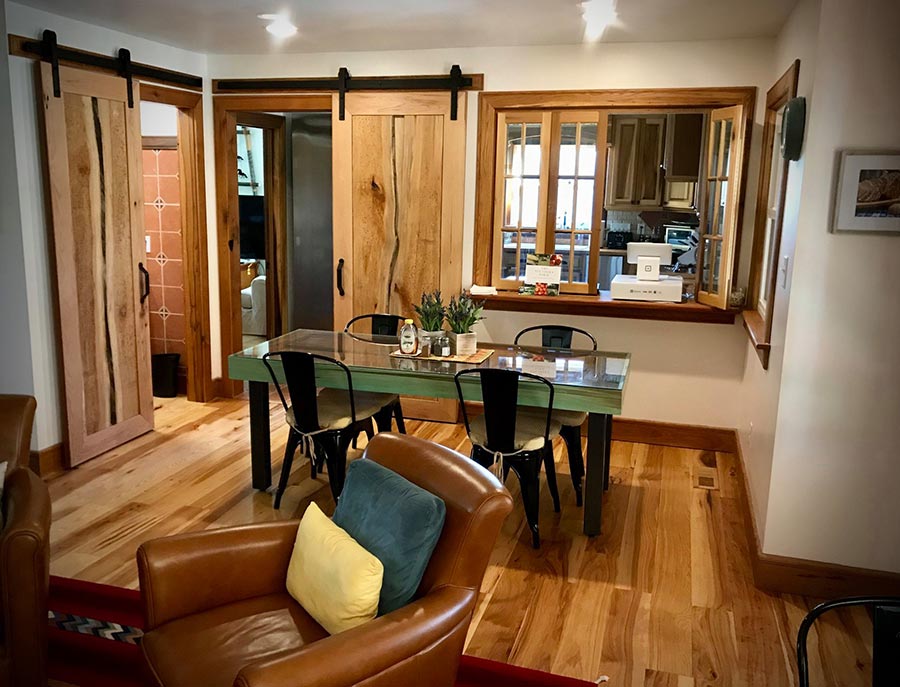 We arrived by bicycle. Of course, we arrived early and were warmly welcomed by Conrad and Ute. We just hung out in the screened porch and watched the animals roam freely (and content!). The house is a beautiful masterpiece of a creative and skilled woodworker. Every detail in the creation of the house is amazing! Since we had arrived by bicycle and didn't have the energy to bike an additional 30 miles roundtrip we pre-ordered a cheese and pepperoni pizza that was EXCELLENT !!! And so glad we did! The house is located very close to NTP in a very quiet area. Sleeping was the best - a firm mattress; exceptionally clean home; comfortable furnishings; reading materials about; and, excellent hosts. Making our reservations with Conrad & Ute was e-z. Plus, they emailed us all the particulars about the house, farm along with an order form for Conrad to prepare exactly what we wanted. Everything we ate was full of flavor and very fresh.