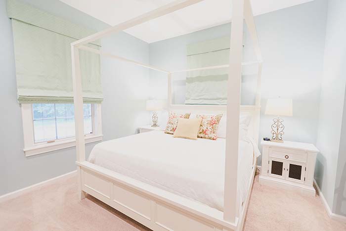 1 Queen bed. Private bathroom. Also, a dressing area that is shared with Rachel Leigh. Note: dressing area is only shared if the same party is renting both the Andrea Lauren and Rachel Leigh rooms.
