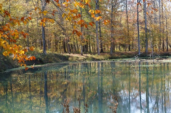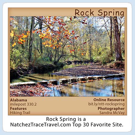 Rock Spring - a nature trail offers you an opportunity to explore a small natural spring as it bubbles forth from the ground. Small fish dart about in the deep pools created as the stream wanders through the rich bottomland soil and limestone rock. Vegetation and trees change as you move through an abandoned field past the stream into a rocky hillside. After completing the 20 minute walk you may decide to pull off your shoes and dangle your feet in the swift cool water.