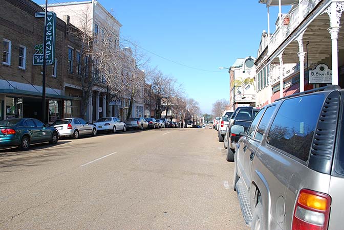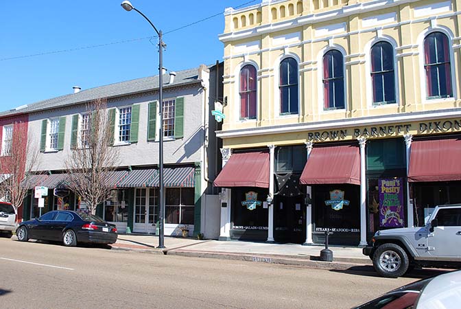 Historic Downtown Natchez, Mississippi is home to dozens of antebellum and Victorian era homes and businesses. Downtown Natchez is very pedestrian friendly with sidewalks along both sides of each street.