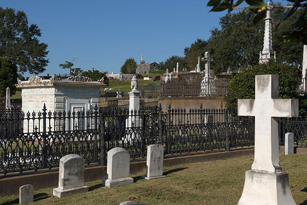 Located just north of downtown Natchez on Cemetery Road and overlooking the Mississippi River, the Natchez City Cemetery was established in 1822 on 100 acres of land.