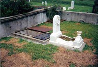 Florence was extremely frightened of storms and whenever one occurred she would rush to her mother. Florence died of yellow fever when she was 10. Her mother was so struck with grief that she had Florence's casket constructed with a glass window at the child’s head. The grave was dug to provide an area, the same depth of the coffin, at the child’s head. Steps allowed the mother to descend to her daughter’s level so she could comfort Florence during storms. In the mid 1950s a concrete wall was built at the bottom of the stairway covering the glass window of Florence’s coffin to prevent vandalism.
