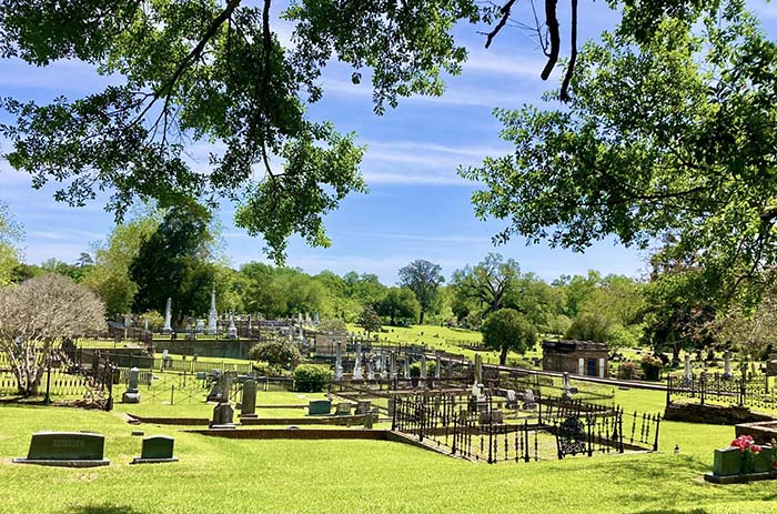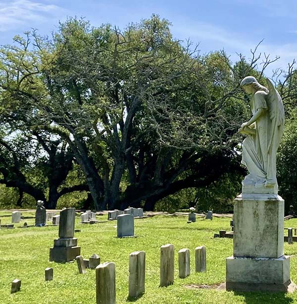 Be sure to see The Turning Angel - an angel monument overlooking five headstones, each with the same date of death. On March 14, 1908 there was an explosion at the Natchez Drug Company killing numerous people. The owner of the Natchez Drug Company was so devastated that he purchased a lot to bury his employees (as young as 12 years old) and he purchased this angel monument to place at their gravesite. The monument is called the ‘The Turning Angel’ because at night when cars drive by on Cemetery Road their headlights shine upon the monument and to some the angel appears to turn as their car passes by.