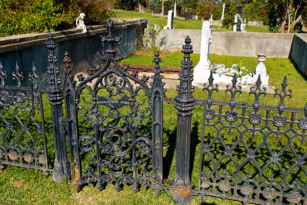 Numerous beautiful, creatively designed iron fences, benches, iron mausoleum doors, tombstones and monuments are found within the cemetery.